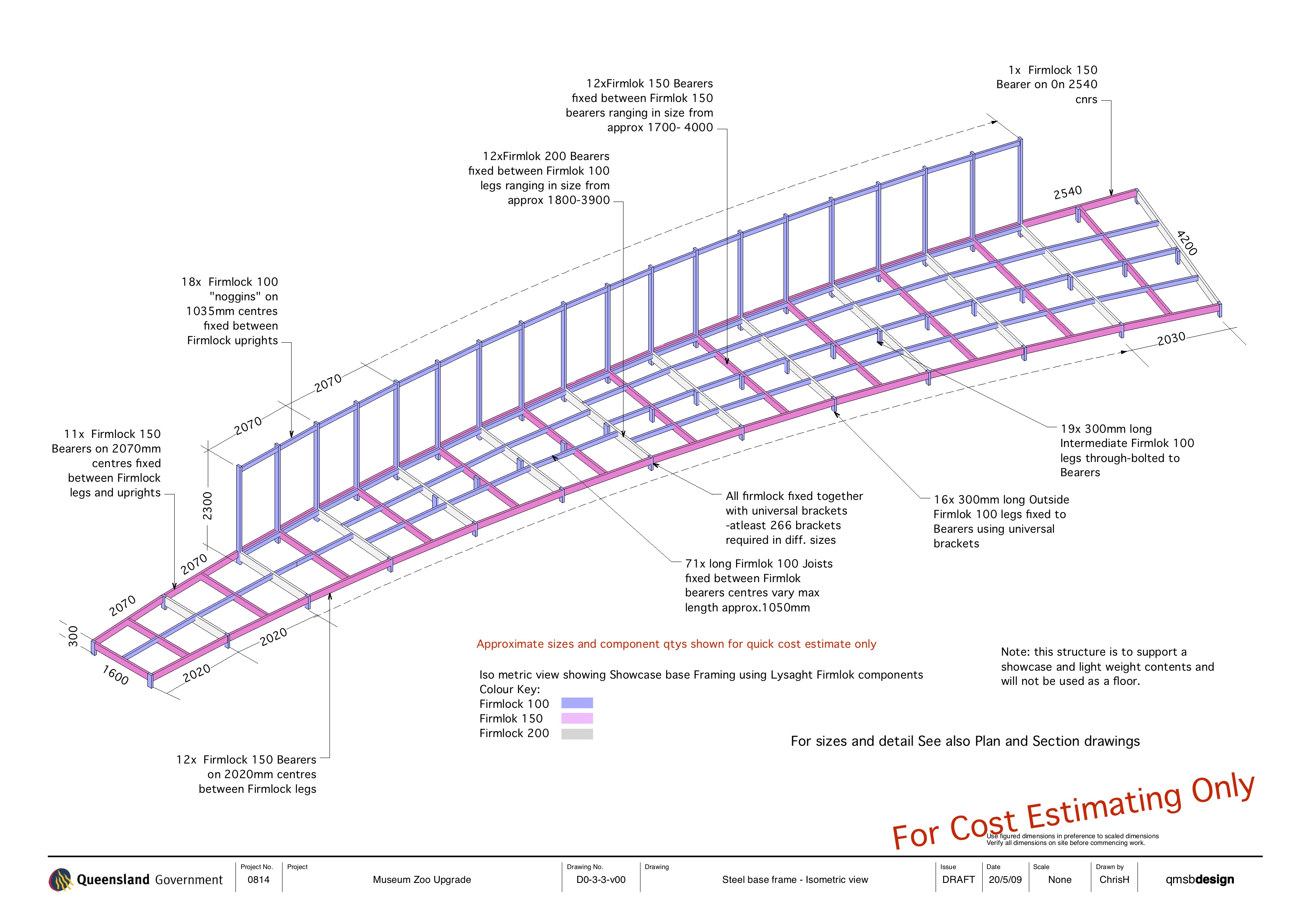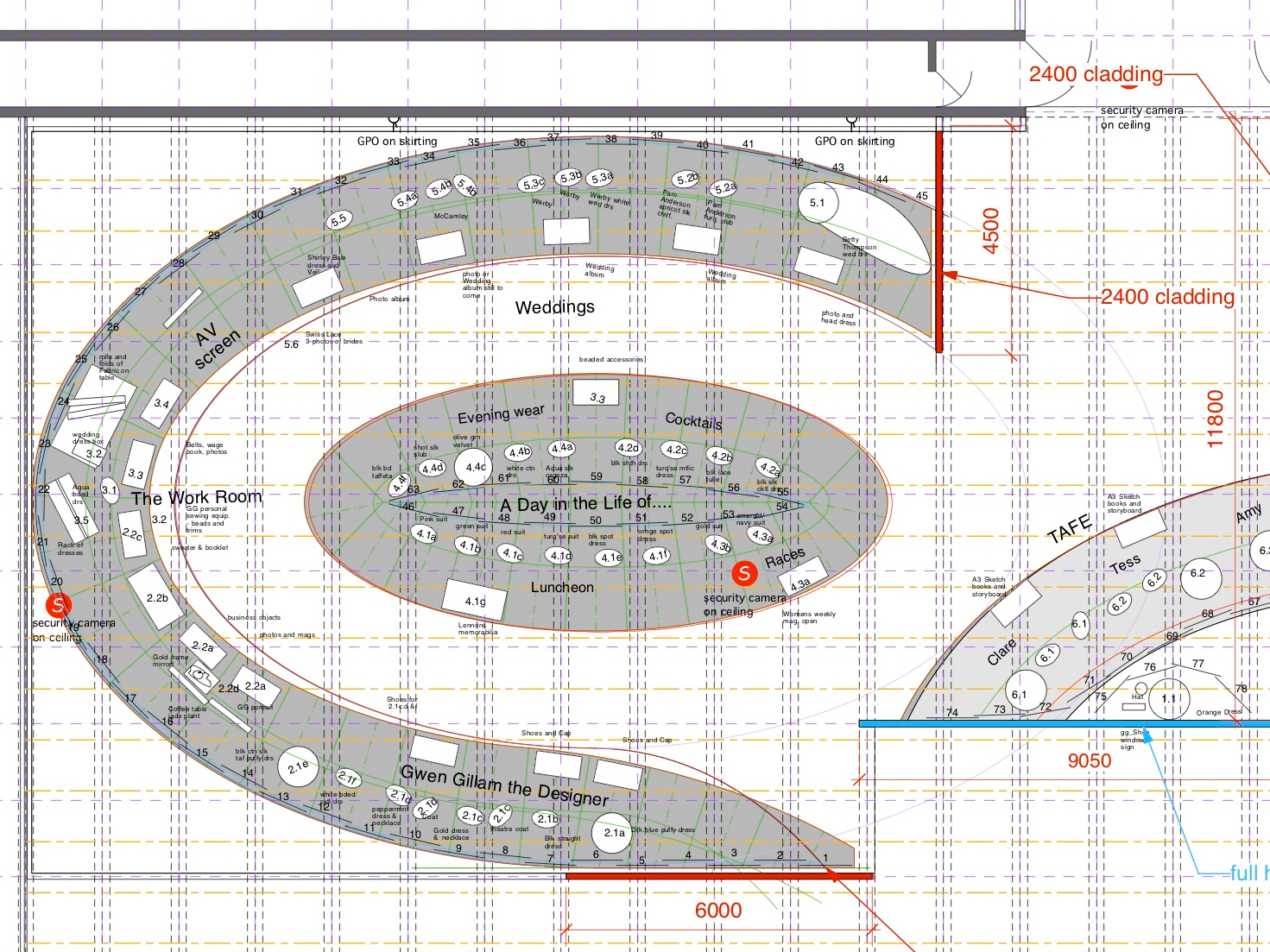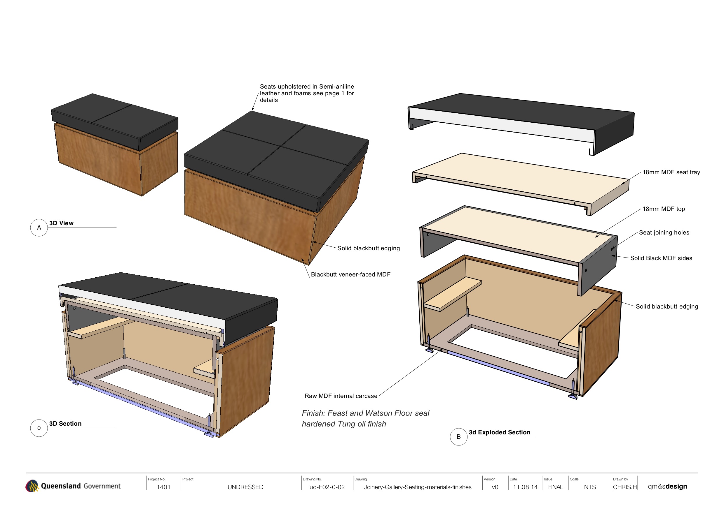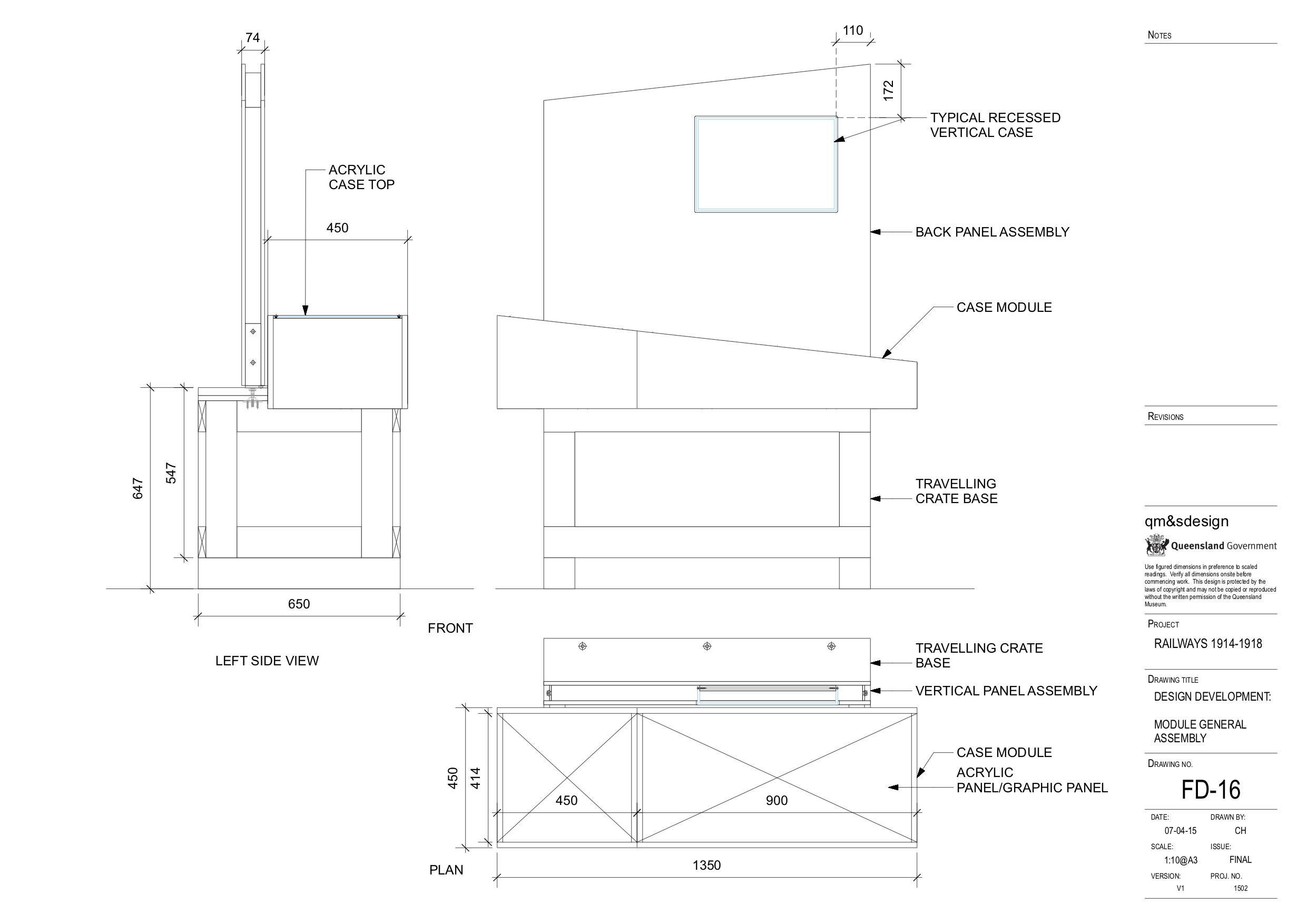 Detailed design development of exhibition layouts, custom showcases, object supports, seating and other exhibition components.